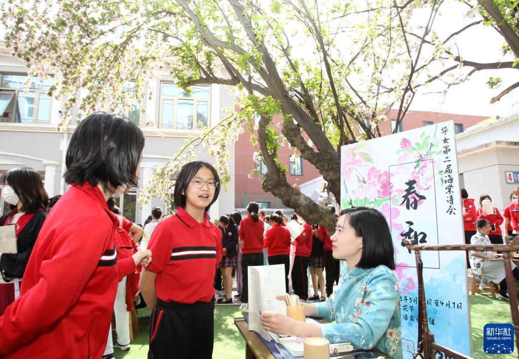 當日,北師大實驗華夏女子中學舉辦以“春和”為主題的第二屆“海棠詩會”。師生們選取有關“春天”“和煦”“生機”“美好”的詩歌,在校園的海棠樹下賞析吟誦,共享詩歌之美,傳承中華優秀傳統文化。