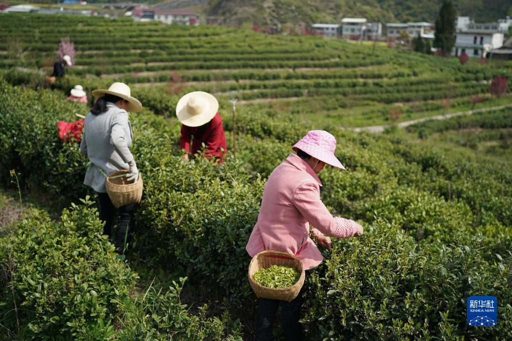 清明節前,陜西省安康市漢濱區茶山上春意盎然,茶農搶抓晴好天氣采收茶葉。近年來,安康市漢濱區著力推動富硒茶產業高質量發展,全區新建標準化茶園15萬畝,茶園總面積達21萬畝,茶葉年產量9000噸以上。