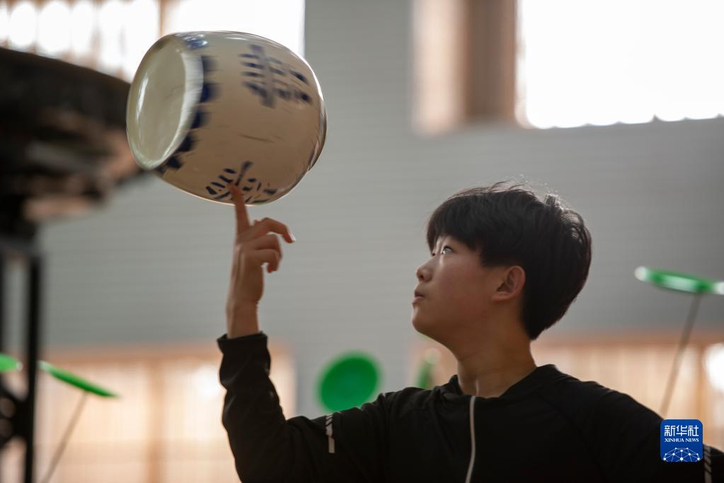 3月31日,演員在位于江蘇省鹽城市建湖縣的江蘇省雜技團訓練。