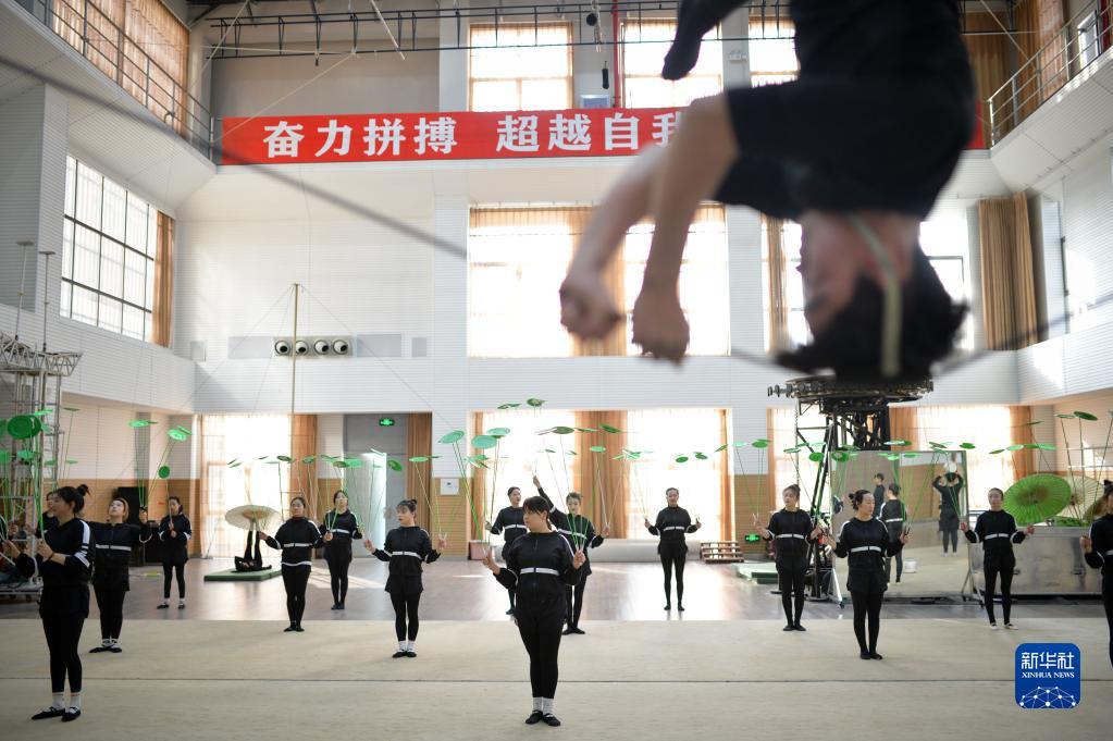 3月31日,演員們在位于江蘇省鹽城市建湖縣的江蘇省雜技團訓練。