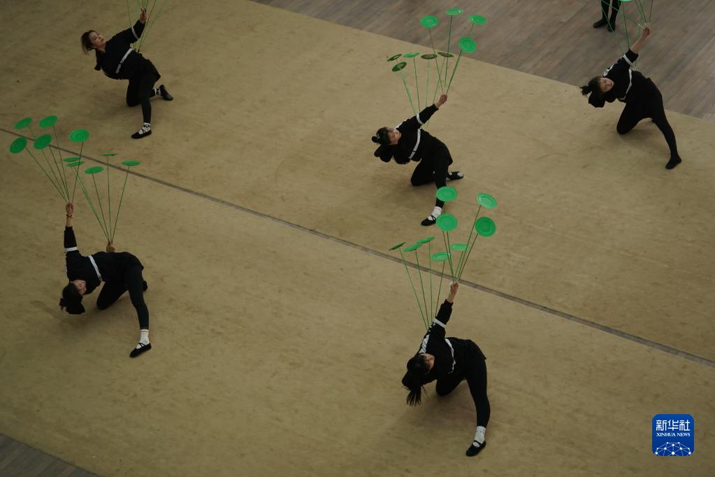 3月31日,演員在位于江蘇省鹽城市建湖縣的江蘇省雜技團訓練。