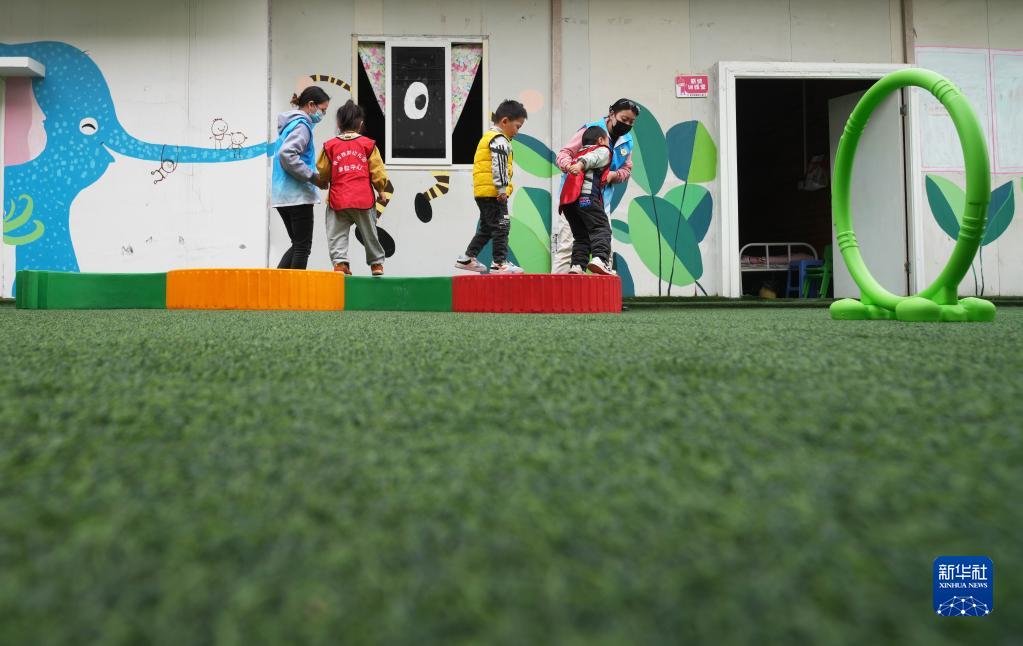 3月31日,在重慶市北碚區奔月鐵路幼兒園康教中心,特教老師幫助孤獨癥兒童進行感統訓練。