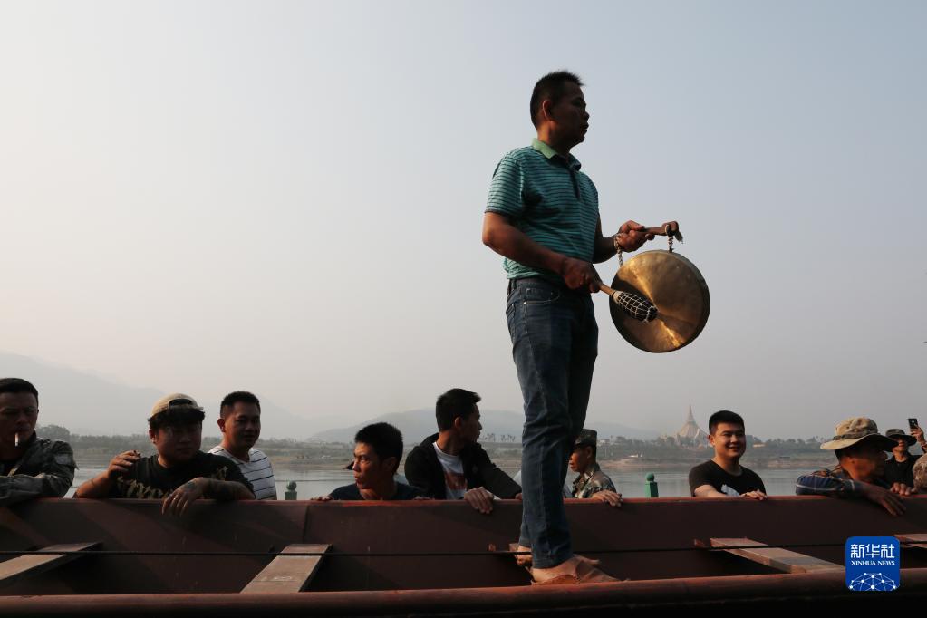 4月1日,云南省景洪市勐罕鎮曼聽村村民在瀾滄江邊進行龍舟下水儀式。