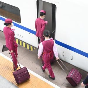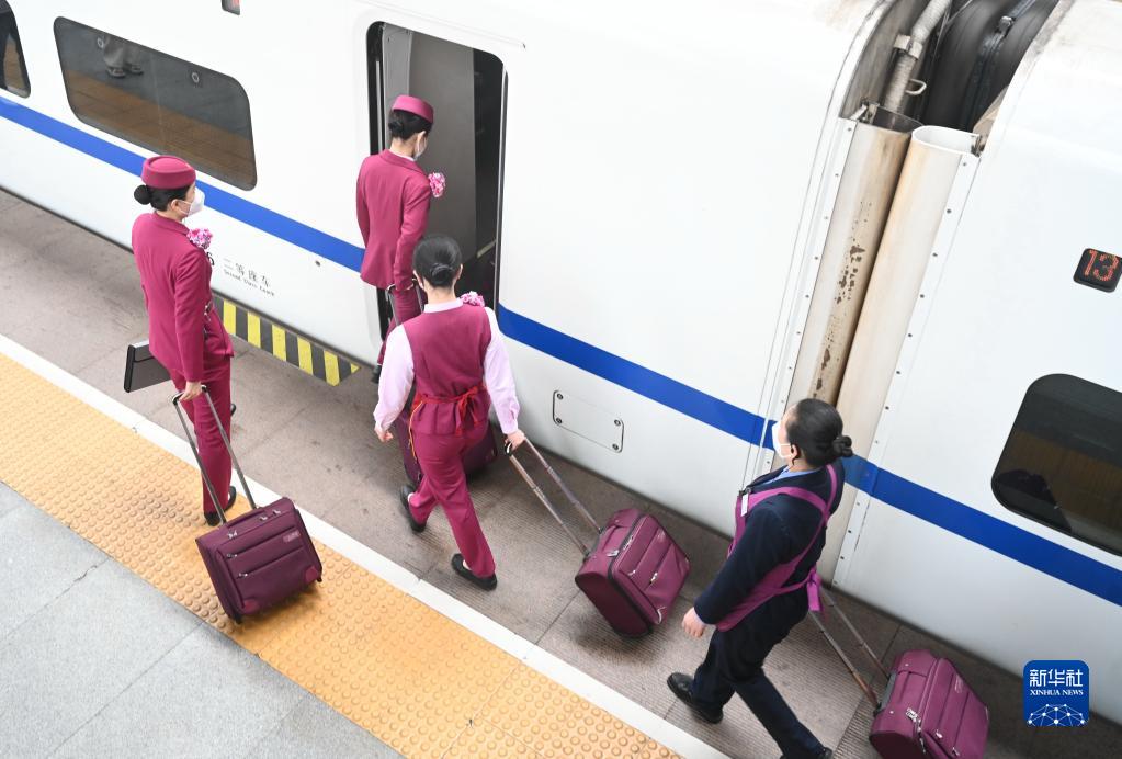 4月1日,中國鐵路南昌局集團有限公司福州客運段工作人員登上從福州火車站開往香港西九龍的G3001次列車。
