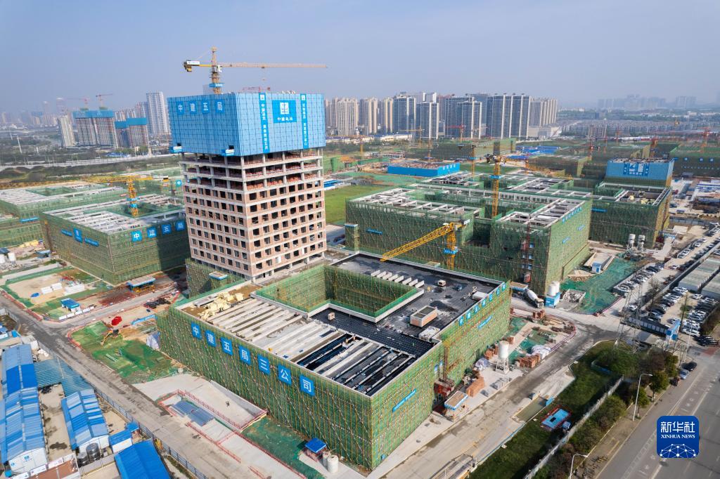 這是4月1日在長沙岳麓山實驗室集聚區農大片區項目建設現場(無人機照片)。