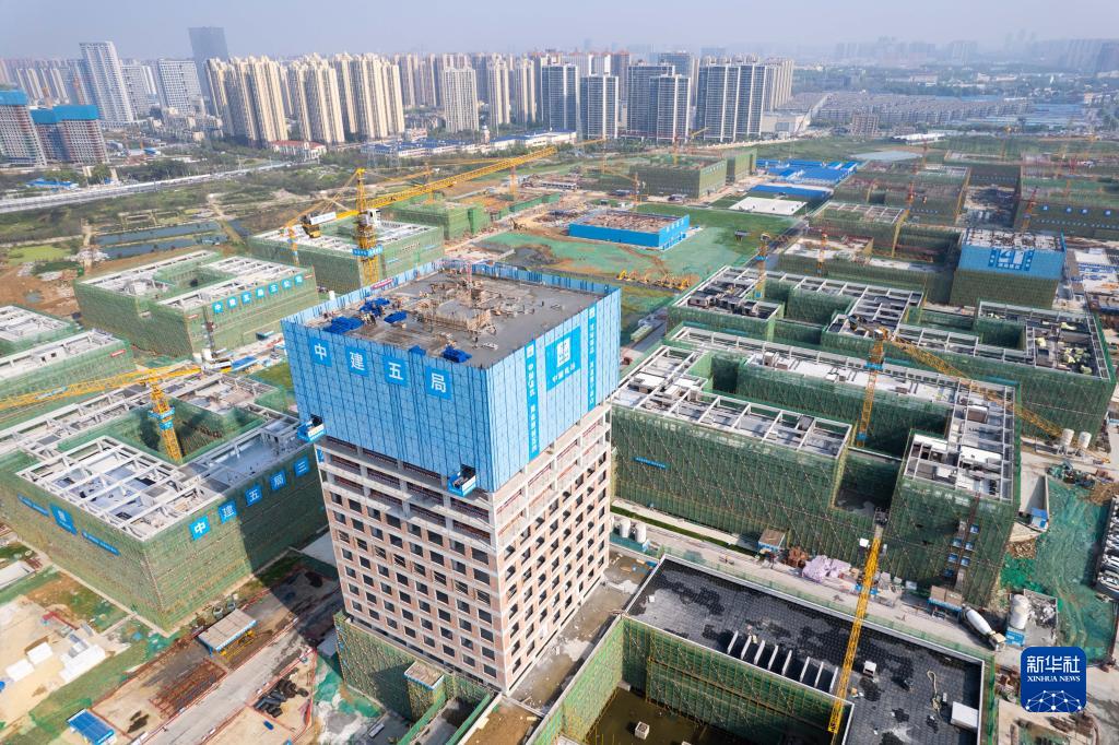 這是4月1日在長沙岳麓山實驗室集聚區農大片區項目建設現場(無人機照片)。