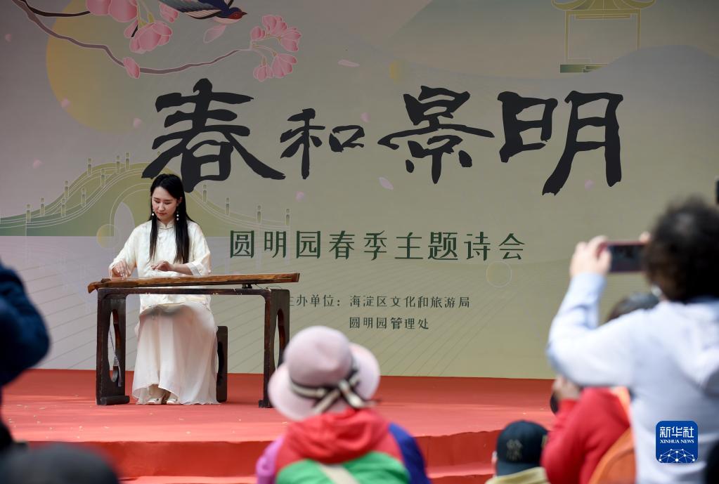 當日,“春和景明”圓明園春季主題系列活動拉開帷幕,圓明園第二十八屆踏青節也同時開幕,市民游客在欣賞園內美景時,還可以欣賞到春季主題詩會、樂器演奏快閃等一系列豐富多彩的文化活動。