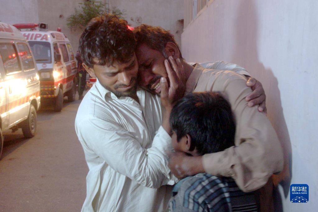 3月31日,在巴基斯坦卡拉奇,踩踏事故遇難者的親屬在醫院哭泣。