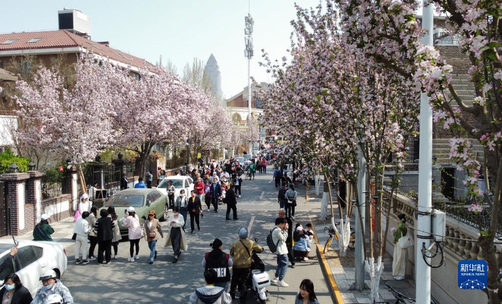 連日來,天津市五大道風景區內海棠花盛開,景色綿延上千米,成為春日里的“網紅打卡地”。為進一步激活文旅消費市場,天津市和平區于3月31日至4月9日舉辦“津遇和平·海棠花”系列活動,以花為媒促進文旅商融合,在景區內舉行了花車巡游、海棠文創市集、主題燈光秀等豐富多彩的活動,讓市民游客“游”出新“花”樣,“春日經濟”綻放出新活力。