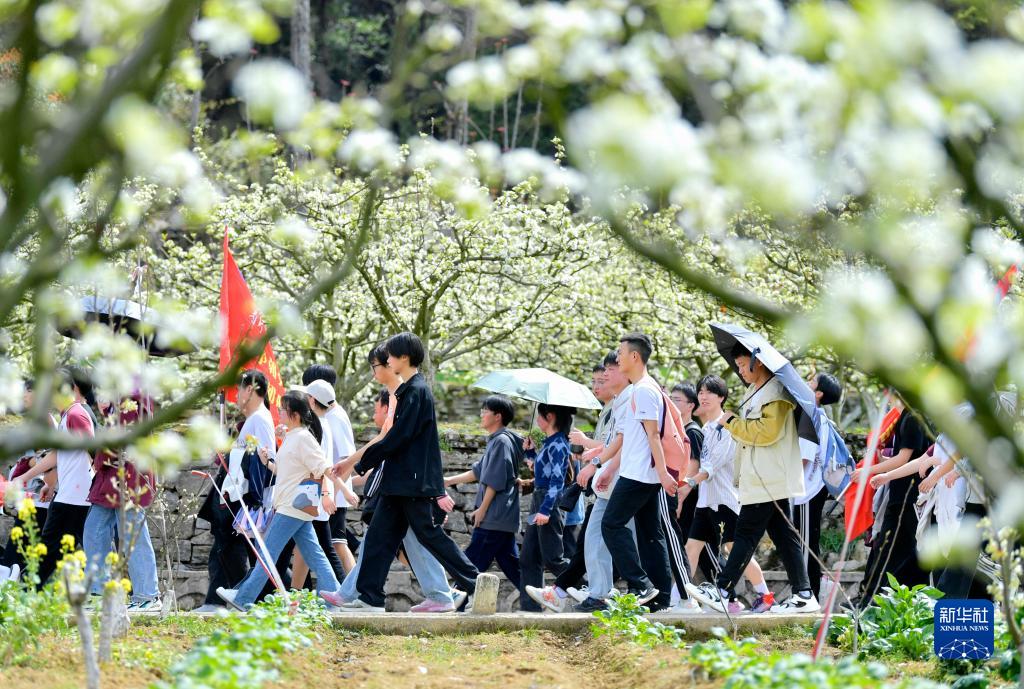 清明臨近,湖北省恩施土家族苗族自治州宣恩縣特色水果黃金梨進入盛花期,吸引眾多游客進園觀光游玩。近幾年,當地依托黃金梨資源,開展研學游、賞花游、采摘體驗游等農旅融合活動,帶動鄉村民宿、農家樂等產業的發展,為鄉村振興注入了新的活力。