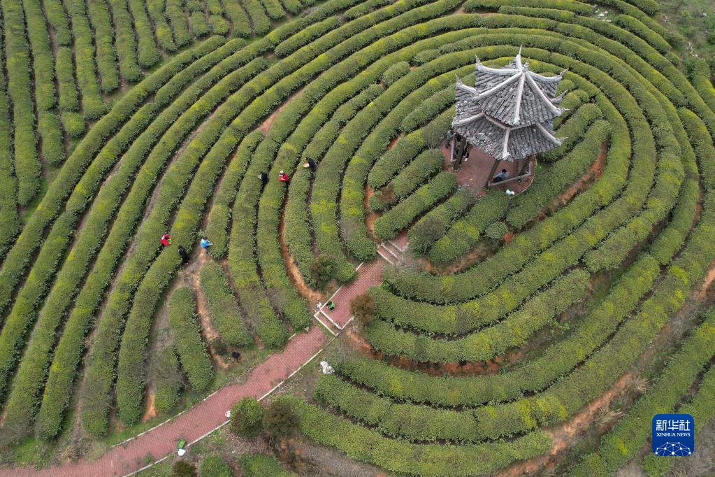 這是4月1日拍攝的岑鞏縣天馬鎮一茶葉種植基地(無人機照片)。
