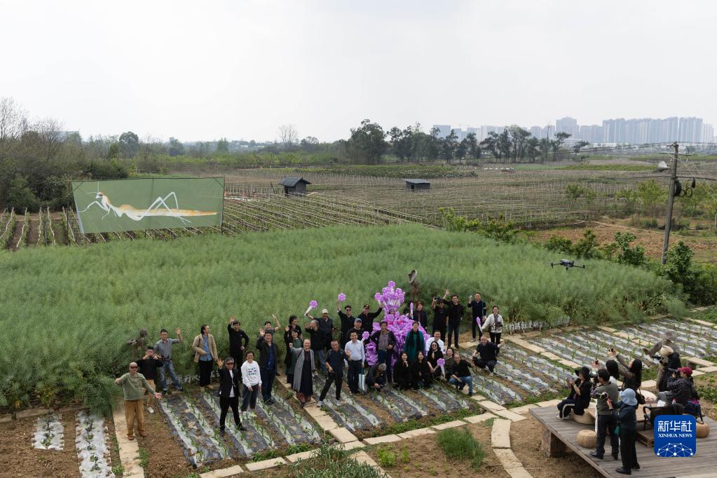4月1日,參加影像藝術展的嘉賓在田間合影。