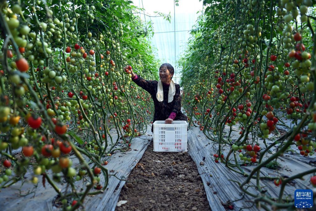 4月1日,在山東省棗莊市臺兒莊區馬蘭屯鎮按揭農業基地,菜農在采摘西紅柿。