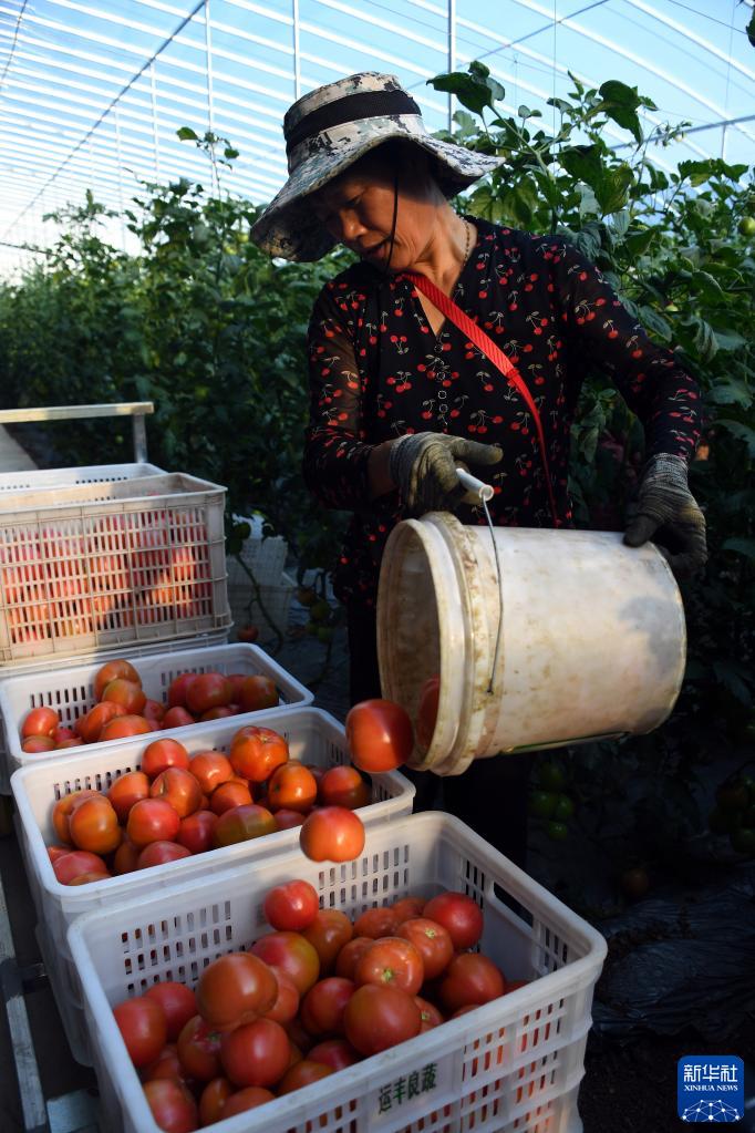 4月1日,在山東省棗莊市臺兒莊區馬蘭屯鎮按揭農業基地,菜農在采摘西紅柿。
