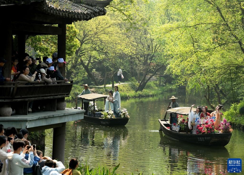 4月2日,游客在西溪濕地觀賞宋韻花朝節表演。
