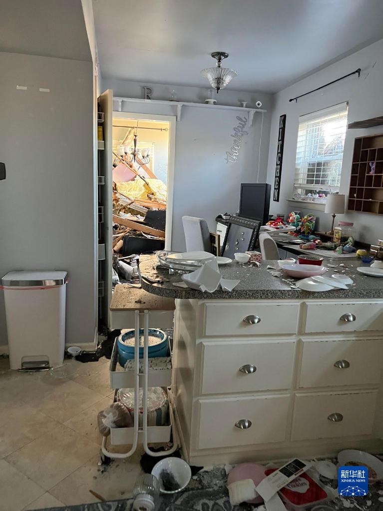 這是4月1日在美國阿肯色州小石城拍攝的一棟居民房屋遭受龍卷風襲擊后的景象。