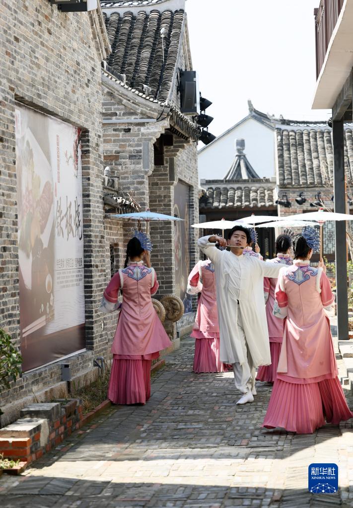 4月1日,演員在位于江蘇省鹽城市建湖縣的淮劇小鎮表演淮劇。