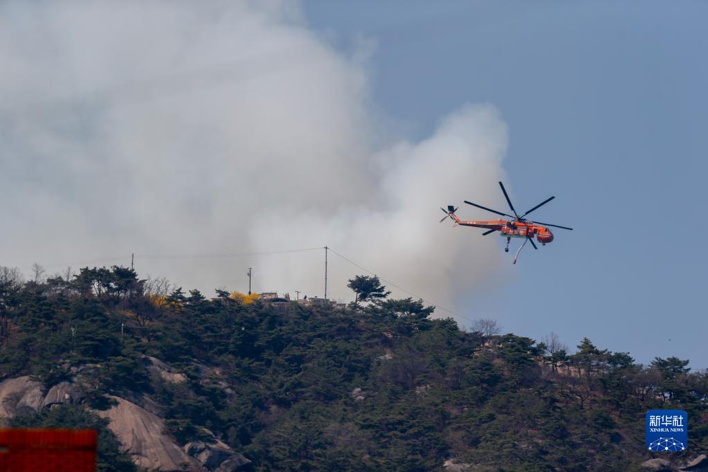 4月2日,直升機在韓國首爾市仁王山上空執行滅火作業。
