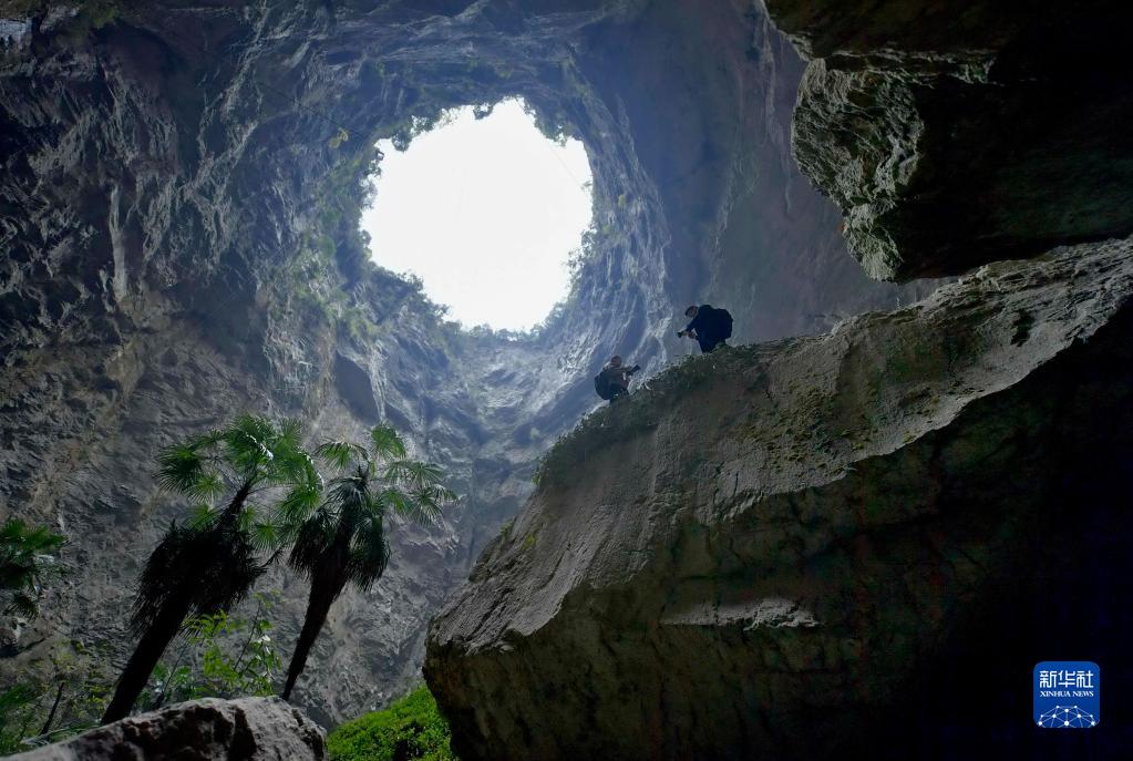 春暖花開時節,在位于湖北省西部山區的宣恩縣矅天眼景區,眾多春季研學的師生在深達290余米的鑼圈巖天坑及周邊溶洞中進行科普學習。