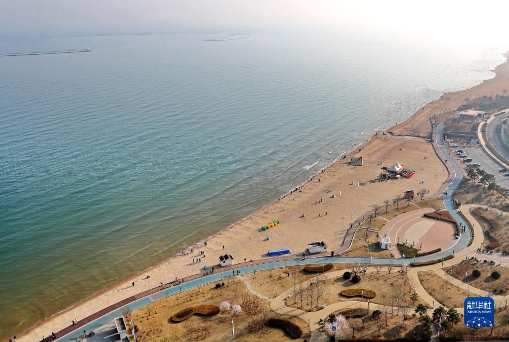 4月1日,游客在秦皇島市海港區金夢海灣游覽。