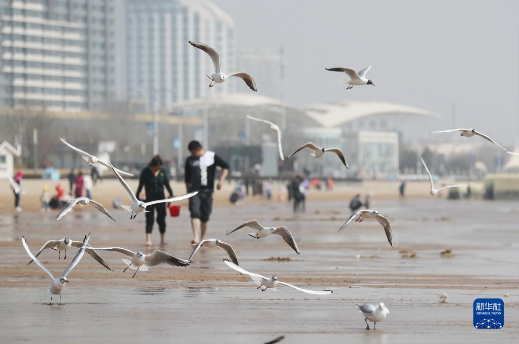 4月2日,游客在秦皇島市海港區金夢海灣游覽。