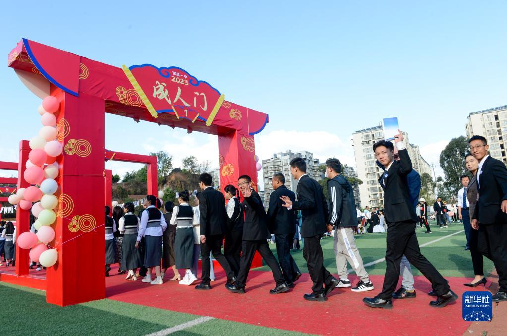 當日,四川省西昌市西昌一中舉辦2023年度成人禮,學生在成人禮上參加禮拜父母、跨越成人門、向未來寄語等儀式,致敬青春,開啟人生新的旅程。