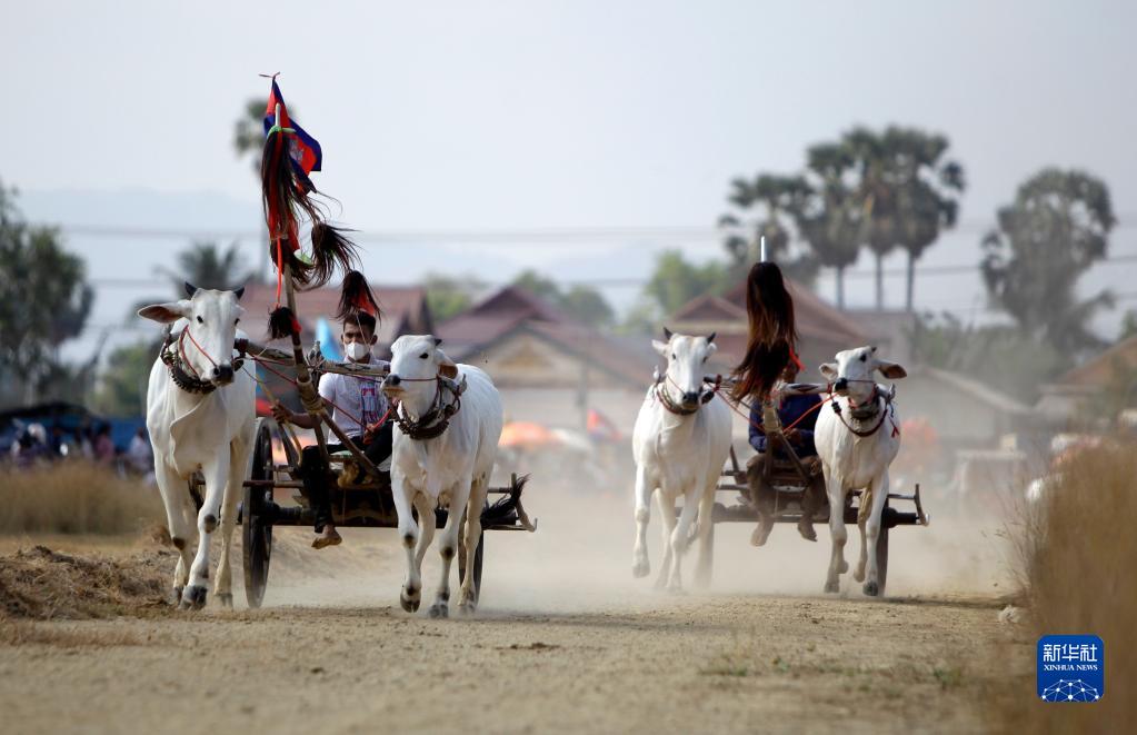 4月2日,在柬埔寨南部磅士卑省,當地農民參加趕牛車比賽。