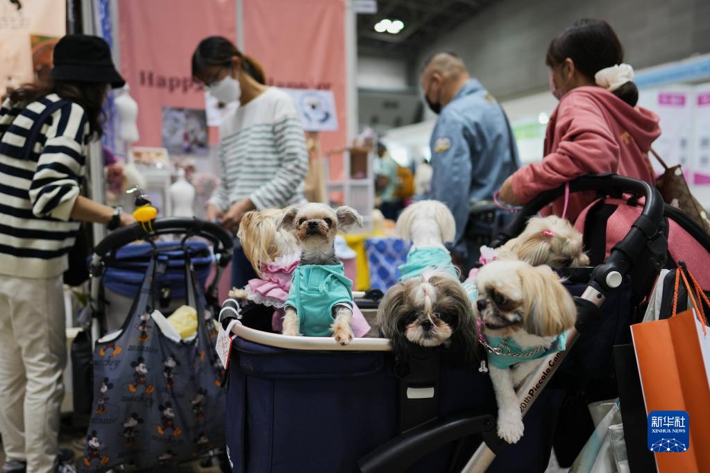 4月2日,人們帶著寵物參觀日本東京國際寵物用品博覽會。