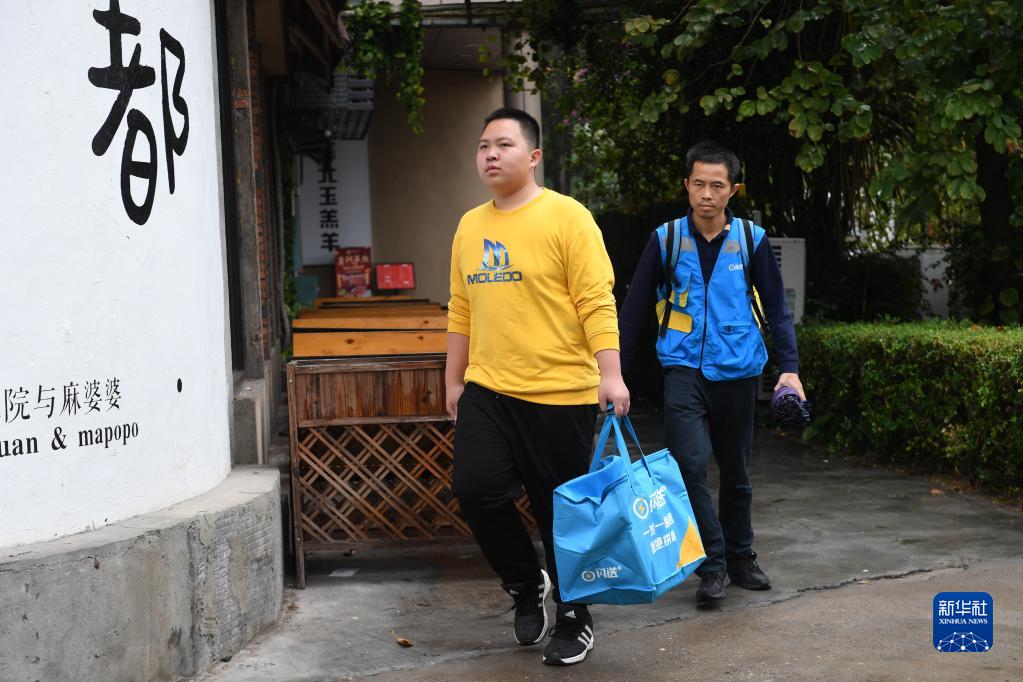 黃志能2歲時確診孤獨癥,出于讓他多接觸外面世界的想法,黃少禮跑單送貨時都會帶著他。父子倆每日背著包穿梭在城市的大街小巷里,搶單、送貨。黃志能方向感很強,找路、換車十分熟悉,比父親還快?!八X子里有個地圖,去哪里都找得到?!秉S少禮說,“送單時,他情緒很好,跟客人都能正常溝通。我希望每天能多接單,讓他的情緒保持平穩,將來能夠獨立生活”。