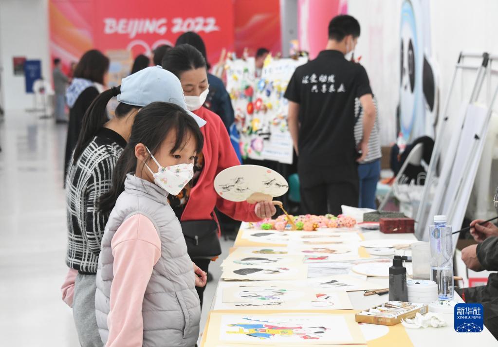 4月2日,小朋友在國家游泳中心“水立方”參觀愛心市集。