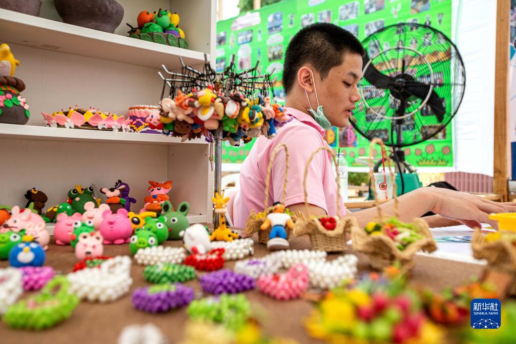 4月2日,在位于曼谷的泰國孤獨癥職業中心,一名孤獨癥患者制作手工藝品。