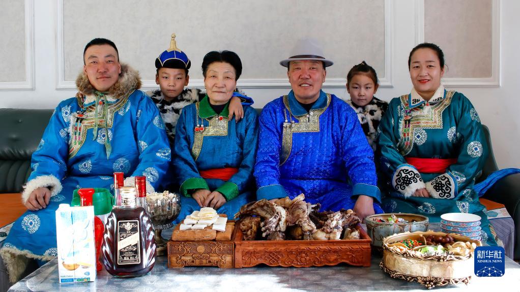這是朝克德力根一家人的合影(資料照片)。從左到右依次為朝克德力根,兒子哈納嘎爾,母親敖日勒瑪,父親圖門巴雅爾,女兒哈麗嘎恩,妻子孟根圖雅。