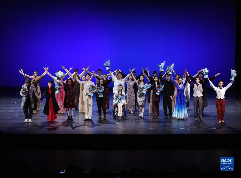 4月3日,舞劇《藍色裙擺》的主創人員與觀眾見面。