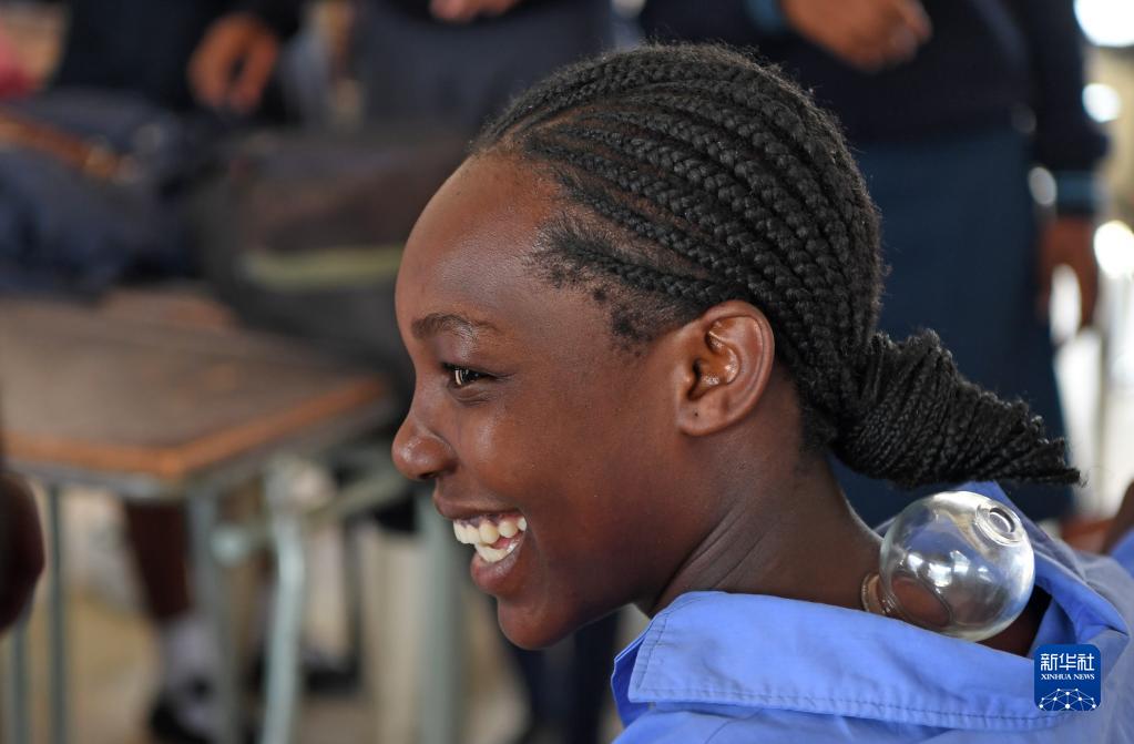 4月3日,在納米比亞溫得和克的伊曼紐爾·謝菲迪中學課堂上,一名學生體驗拔火罐。