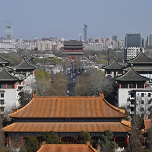 修繕維護中的永定門(3月29日攝)。新華社記者 李賀 攝