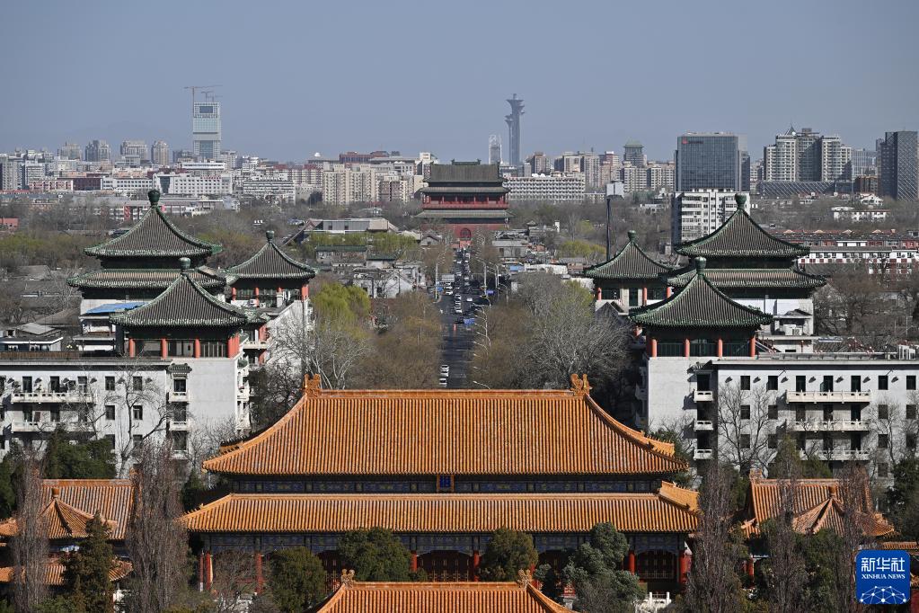 從景山上向北眺望的鼓樓(3月15日攝)。新華社記者 李鑫 攝