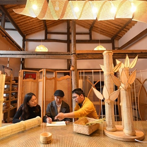 2018年,在杭州一個動畫設計公司工作的青年姜鵬和妻子鄒霞辭去大城市的工作,回到老家龍游,在古村溪口租下一棟老房子進行創業。夫妻倆發揮設計專長,為家鄉農產品代言。同時,兩人又結合當地竹資源豐富的特點,以“導師幫帶”模式,邀請專業院校老師和設計師共同開發竹產品,帶動周邊20余名工匠、170多戶村民參與產品制作。目前,他們的團隊共開發了2600款竹產品,農特產年銷售額1500萬元,參與村民戶均年增收1.8萬元左右。