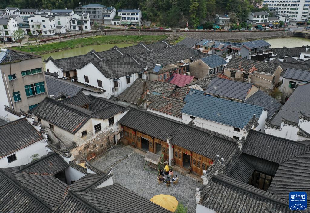 4月3日,幾名老街青年創客聚集在姜鵬工作室交流心得體會(無人機照片)。新華社記者 翁忻旸 攝