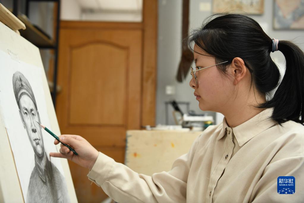 “看著創作出來的畫像,就感覺烈士在看著我,我也迎著他的目光,仿佛自己在跟他‘對話’,我會一直記住他年輕的樣子?!卑不諑煼洞髮W的“00后”大學生志愿者胡守瑩告訴記者,為烈士畫像的意義不僅在于畫,還要把烈士們的信念傳遞給正值青春的大學生。