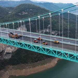 近日,貴金古(貴陽經金沙至古藺)高速金烽烏江大橋建設項目已全面進入橋面鋪裝施工階段。金烽烏江大橋是貴金古高速公路項目的重要控制性工程,橋梁全長1473.5米。