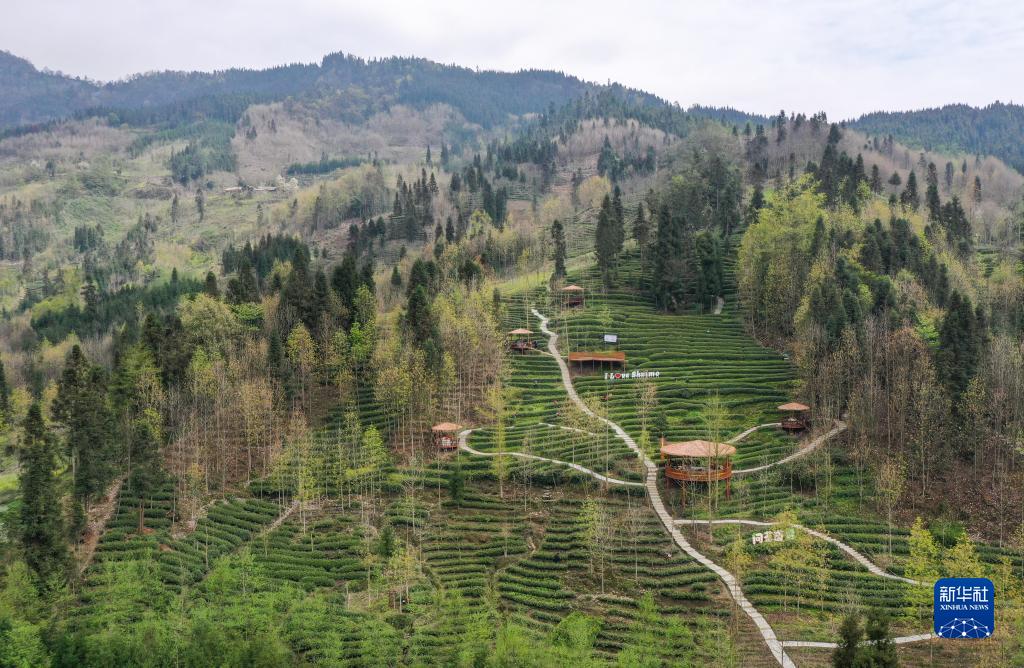 這是4月4日在四川省汶川縣水磨鎮牛塘溝村拍攝的茶園(無人機照片)。
