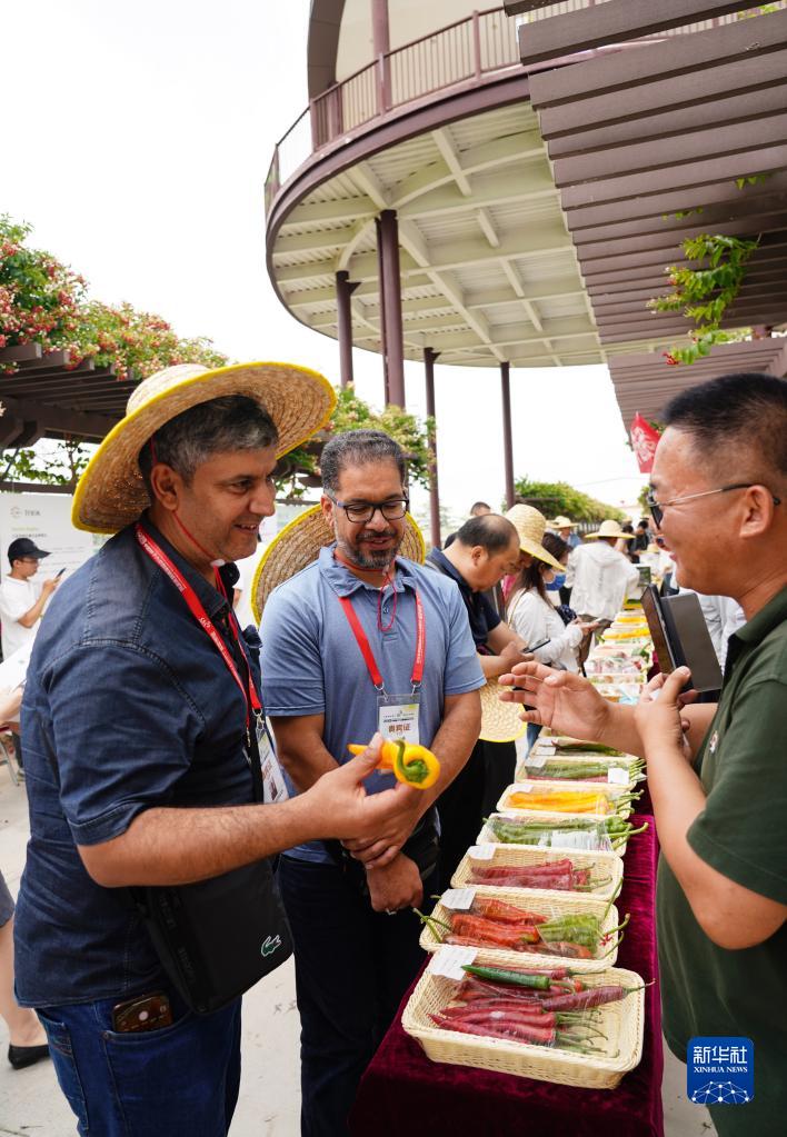 三亞市崖州區國家現代農業產業園作為2023年中國種子大會暨南繁硅谷論壇地展環節的展示基地,共展出200多家單位培育的近30個作物類型1800多個品種,吸引眾多與會者前來參觀。