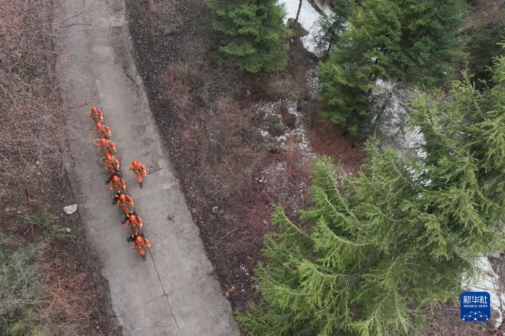 4月4日,連城駐防分隊的指戰員們在保護區內的吐魯溝國家森林公園巡護執勤(無人機照片)。