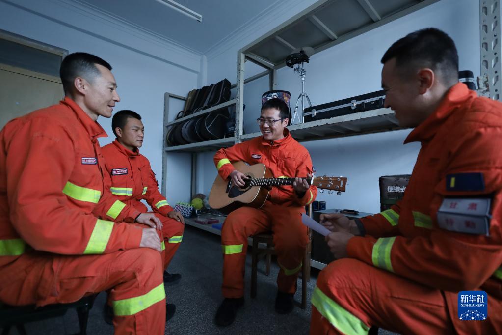 4月4日,連城駐防分隊的指戰員們在駐地休息。
