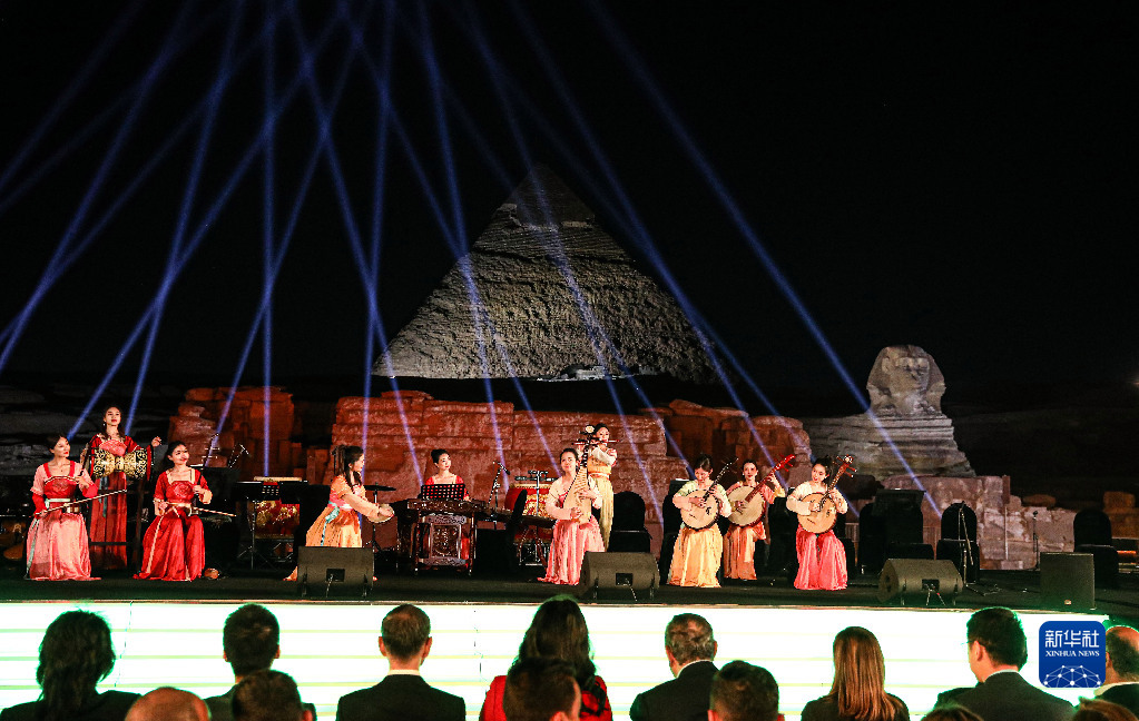 3日晚,由中國文化和旅游部、埃及旅游和文物部、中國駐埃及大使館共同主辦的中國-埃及民族音樂會在吉薩金字塔景區舉辦。中國中央民族樂團藝術家和埃及民族音樂家聯袂為現場觀眾獻上精彩演出。