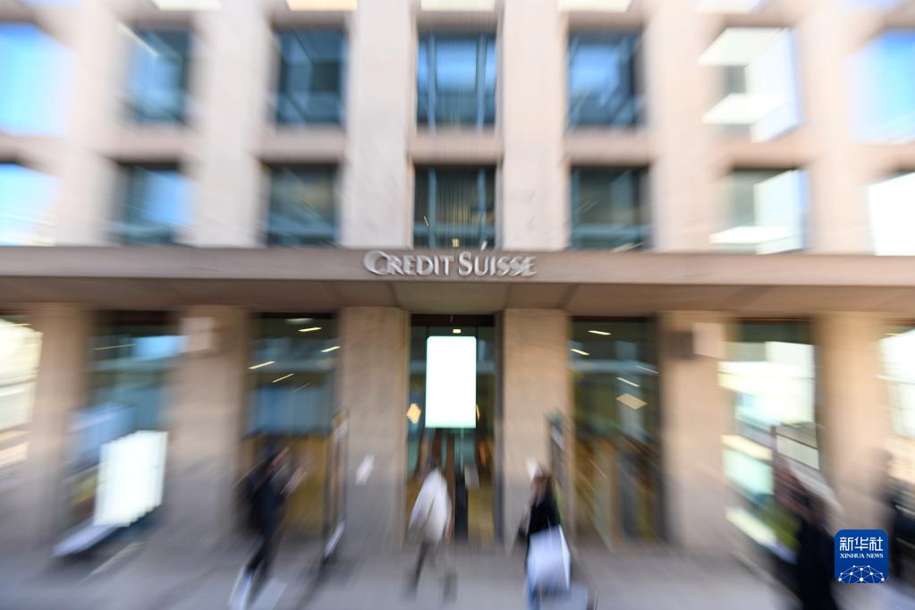 4月4日,在瑞士日內瓦,人們走過瑞士信貸銀行大樓。