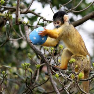 4月5日,在英國倫敦動物園,一只松鼠猴享用“彩蛋大餐”。