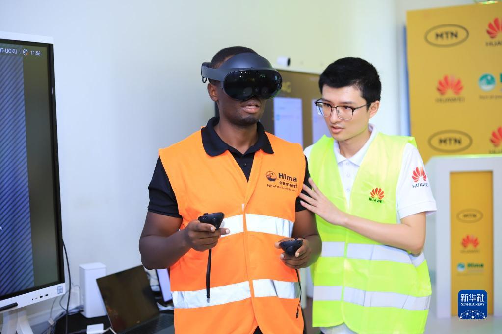 4月3日,在烏干達坎帕拉舉行的5G數字水泥工廠項目發布會上,中國華為公司與烏干達HIMA水泥公司代表演示5G技術應用帶來的增強現實(AR)技術運用新場景。