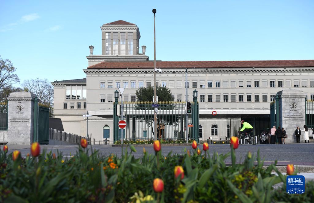 這是4月5日在瑞士日內瓦拍攝的世貿組織總部外景。