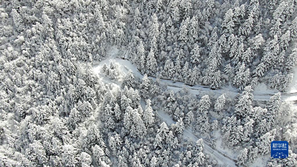 一場春雪過后,位于甘肅省隴南市宕昌縣的官鵝溝森林公園銀裝素裹,山巒之間云霧飄渺,美不勝收。